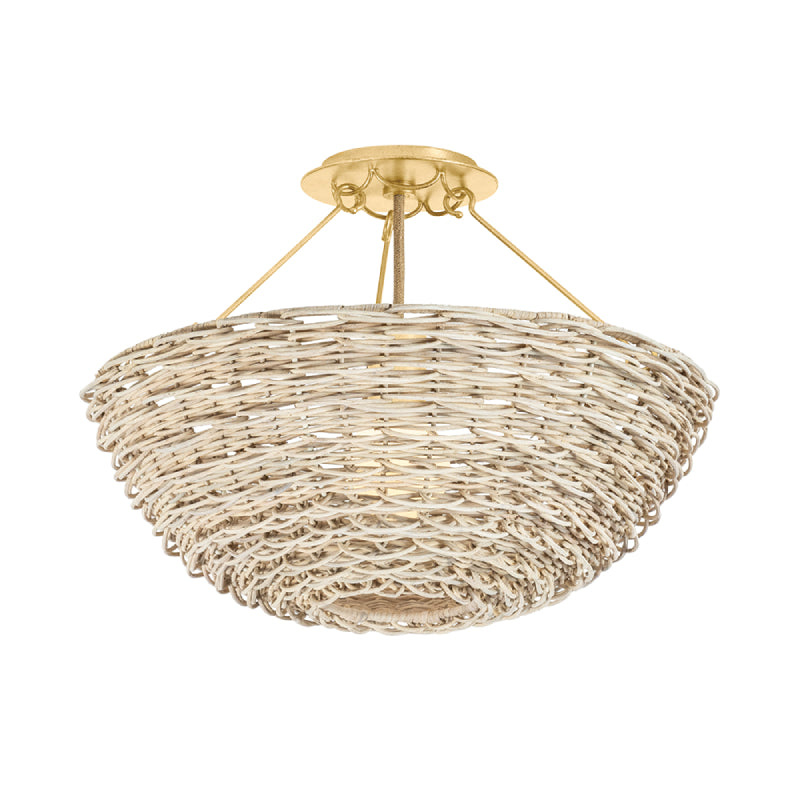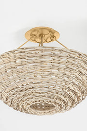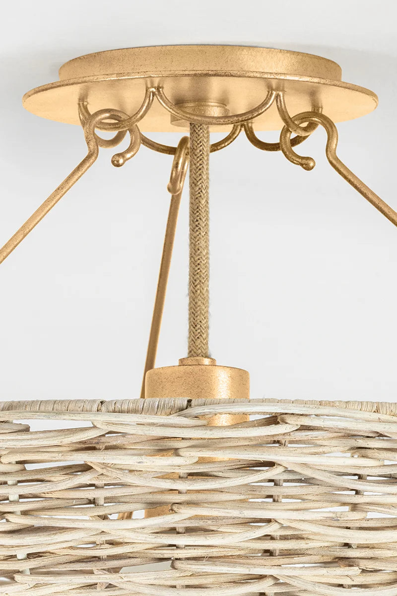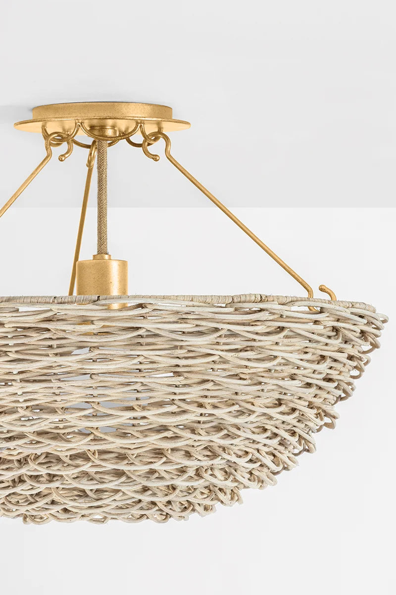 Woven in a unique scalloped pattern, the whitewash rattan of Campo makes for a highly textural and beautiful flush mount shade. The loose weave allows light to radiate through the negative space, casting mesmerizing lighting effects on the walls and ceiling.