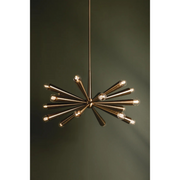 Keanu takes the very familiar sputnik design and makes it feel special. Slender, elongated cone-shaped shades in Patina Brass extend from a center orb giving the piece a vintage vibe that feels modern. The wall sconce casts both uplight and downlight, the flush mount adds gorgeous style close to the ceiling, and the chandelier's stunning silhouette comes in two sizes and casts a brilliant glow in every direction.