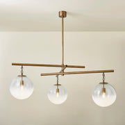 Inspired by the cosmos, Wade features large Sfumato glass spheres that orbit the mobile-like structure. A substantial jewelry-like chain and artful geometry add to the design of this chandelier.