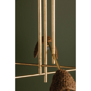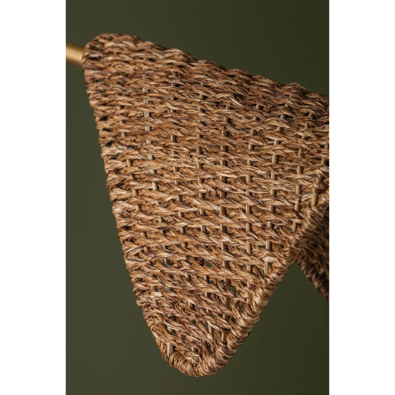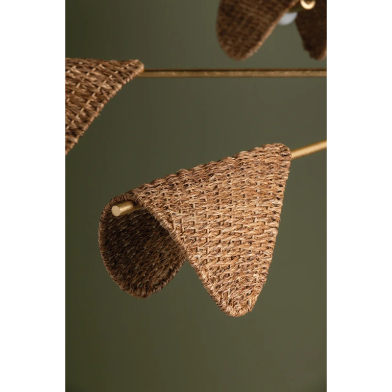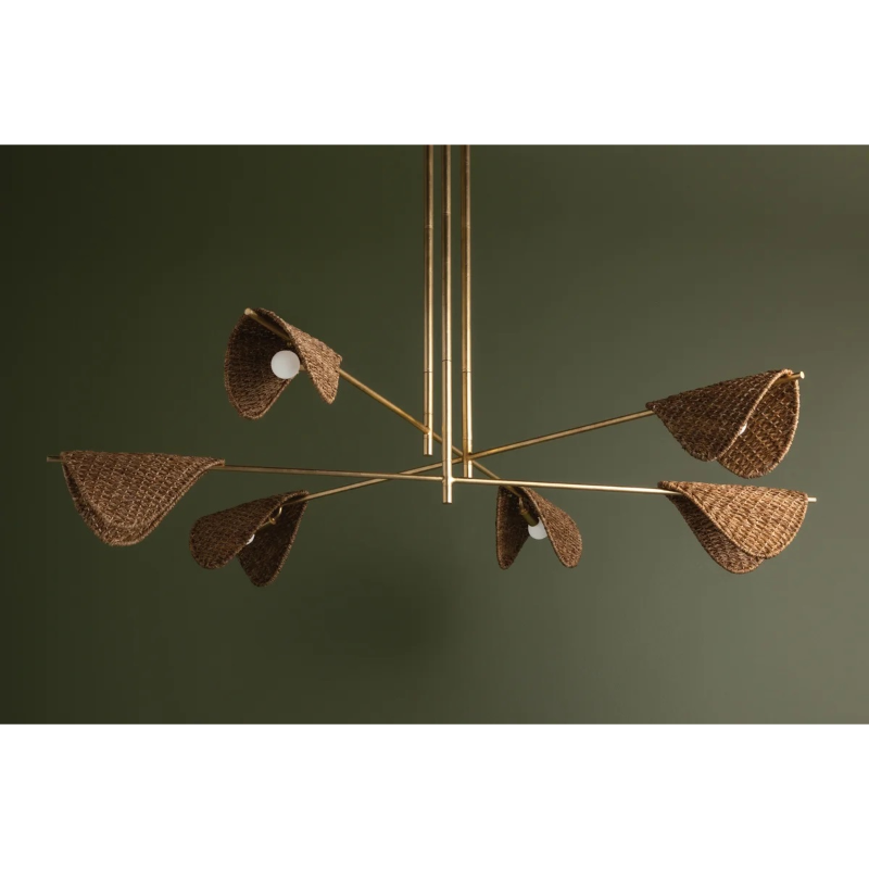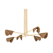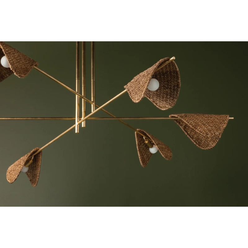 Let your imagination take flight with the dynamic artistry of Barnaby. Mimicking the elliptical wing movements of birds, each shade has been handwoven from natural abaca fibers to create an airy and sculptural centerpiece. As a point of contrast, the clean lines and right angles of the Aged Brass frame lend this mobile-inspired chandelier a pleasing sense of order.