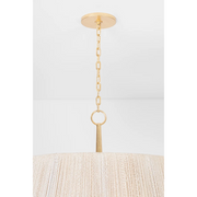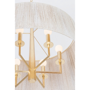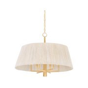 French Riviera finesse meets mid-century modernism in the Azar pendant. The large drum shade is wrapped entirely in Bleached Abaca cord, allowing light to shine through. Finished in Vintage Gold Leaf, the angular frame takes its cues from vintage iron lighting as it peaks out from under the shade. Available in two sizes with either 4 or 6 lights, Azar provides a sophisticated lighting experience. *Due to the one-of-a-kind nature of the medium, exact colors and patterns may vary slightly from the image shown.