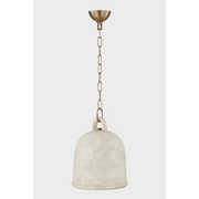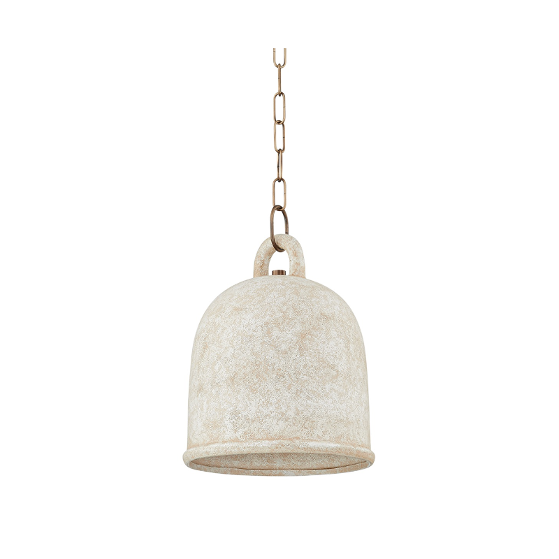 Relic is the epitome of earthy sophistication. The White Ceramic bell-shaped pendant is highly textured, creating a modern form with a rustic feel. The shade fills with a warm light and the curved handle at the top is both functional and beautiful. Gorgeous styled alone or in multiples. Part of our Lauren Liess collection.