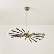 The showstopping Obie chandelier radiates warm, even light throughout a space with its undulating, cosmic shape. Following a circular wave, the arms gently dip up and down to create a different view from every angle.