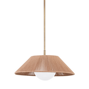An opal glossy glass globe peeks from underneath a cotton string shade giving Lisbon a beautiful organic style when unlit. When lit, the string is intentionally wrapped to allow the entire silhouette of the globe to shine through the shade creating a wonderfully warm and airy feel. The natural color of the sting shade complements the pendant's Patina Brass finish.