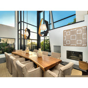 At first glance the hand-worked iron exterior has a depth and perspective that is unexpected in a metal piece. It is the variation in geometric shape, angles, and actual thickness of the metal that contribute to the dynamic dimension, playing with perspective and offering a fresh and unique view from any angle.