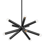 A series of thick, bent metal tubes combine to form an eye-catching eight- or ten-light Sputnik-like silhouette. This thoughtfully designed chandelier provides ample illumination with both uplight and down.