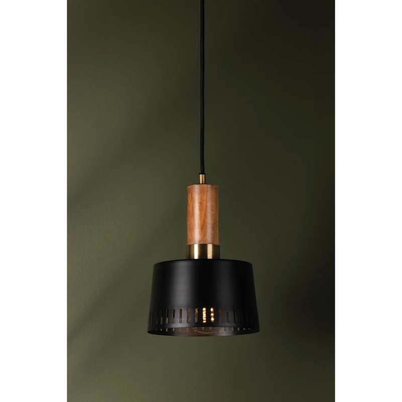 With a nod to mid-century modern, Mephis is a beautiful mix of materials and textures. A perforated soft black metal drum shade is complemented by acacia wood details and patina brass hardware. Both the pendant and the wall sconce work well styled alone in smaller spaces or in multiples in larger areas. *Due to the one-of-a-kind nature of the medium, exact colors and patterns may vary slightly from the image shown.