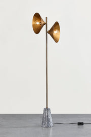 Bash draws inspiration from mid-century design and finished in warm Patina Brass. A Honed Grey Emperador Marble base adds a chic touch to the fixture.