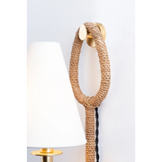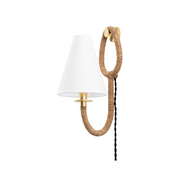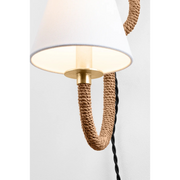 With a nautical nod, Deaver features a curved arm wrapped in abaca rope looped around a Vintage Gold Leaf knob at the backplate. A tapered off-white linen shade and braided black cord add to the earthy, vintage vibe. This portable plug-in sconce is an easy way to bring a little natural style to any room.