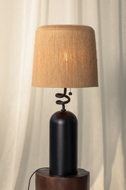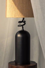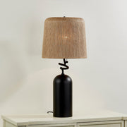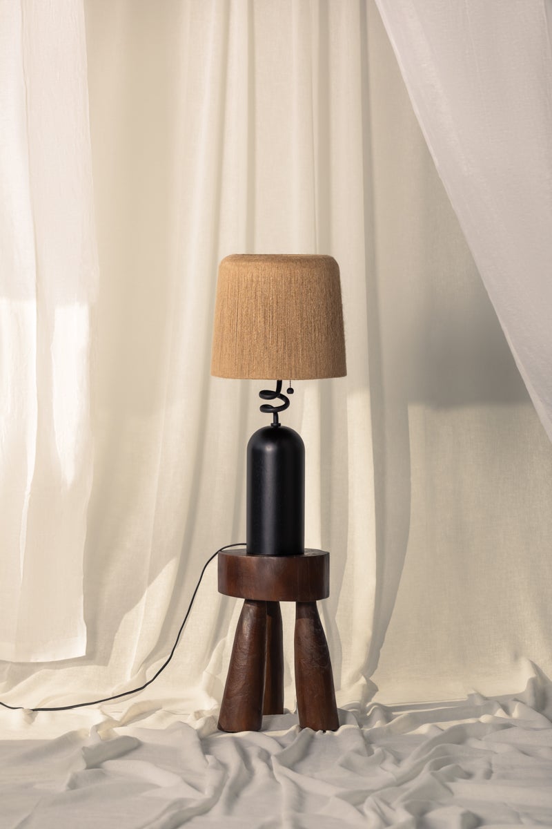In tribute to novelist Toni Morrison, Morri commands attention with its gestural silhouette. The charred wood lamp body provides a solid base for the artfully twisted neck and woven natural Abaca string shade.Β