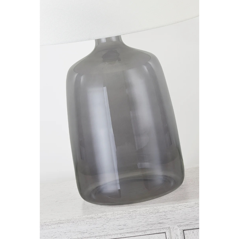 Artesia combines a vintage silhouette with contemporary color. Inspired by antique glass vessels, the sleek, sculptural base is made from smoked plated glass for a modern yet organic style. The twisted black fabric cord and subtle Patina Brass accent add a touch of formality. This effortlessly chic table lamp has a neutral palette that blends with many interiors.