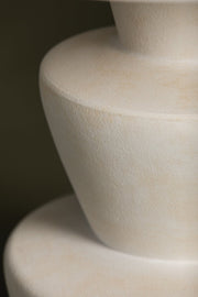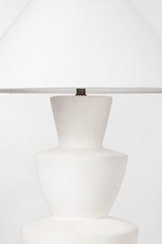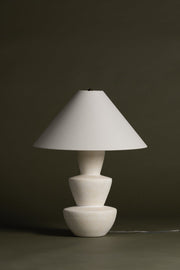 A series of three stacked, bowl-like shapes in ivory texture ceramic give this table lamp an organic, hand-crafted silhouette. The tapered off-white linen shade and Patina Brass accents add to the warm, natural beauty. Style this modern organic lamp on accent and side tables to bring a clean, fresh feel to the entryway, bedroom, and other living spaces.