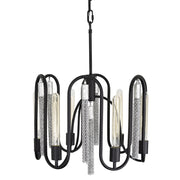 The fluid grace of the Darden Collection conveys a bold, yet tempered strength as the eye follows the parabolic connections between Edison bulb stalagmites and hand-made jewelry chain stalactites. Hints of classic Greek design are apparent in its footprint while gold or silver accents evoke a bohemian warmth.
