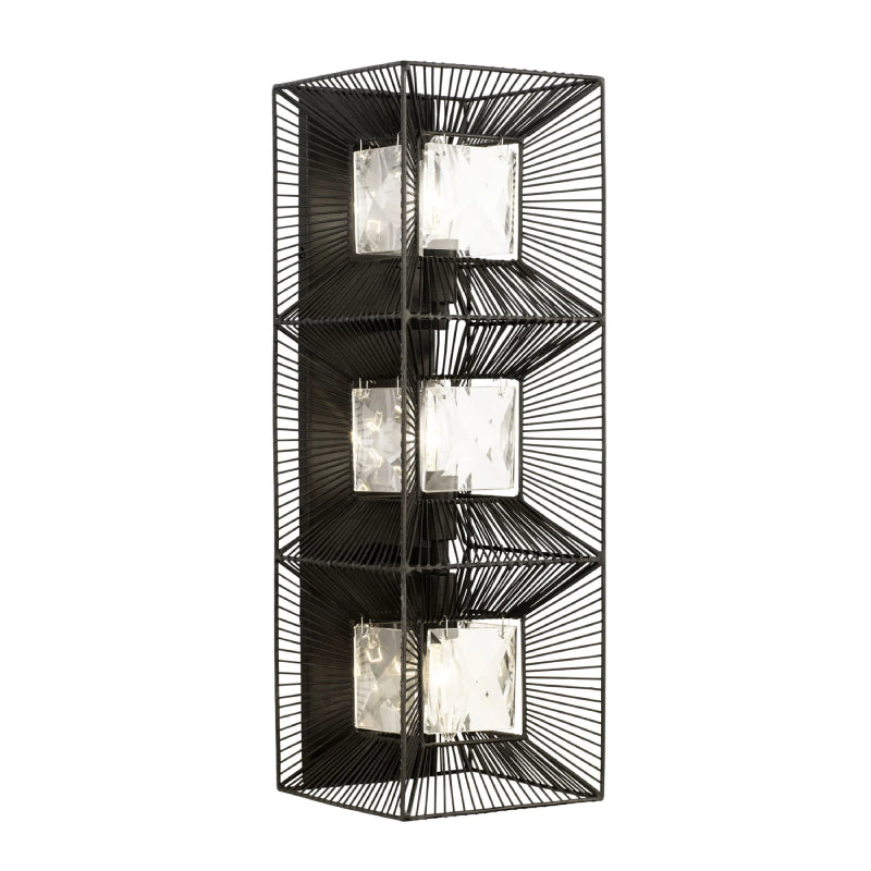 • Material: Handcrafted recycled steel frame and premium faceted crystal panels