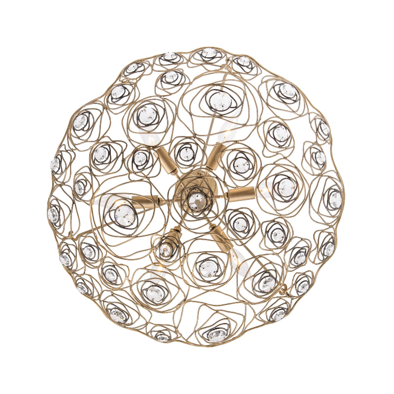 A rose is a rose is a rose, until of course, it is reimagined by Varaluz. Inspired by a drawing that appeared in the Japanese design magazine, Shin-Bijutsukai (New Oceans of Art), Ethereal Rose marries swirling lines of varying thicknesses and irregular curves with a mid-century metal work technique. At the center of each rose is a multi-faceted round optic quality crystal element. The hanging stems and secondary canopy complete the wispy design motif.