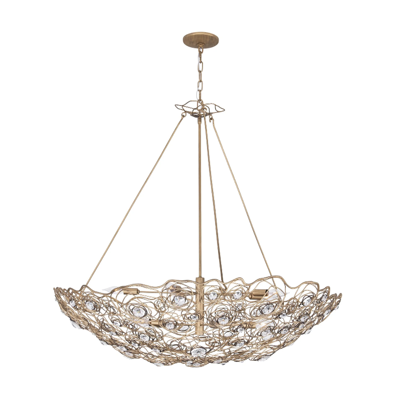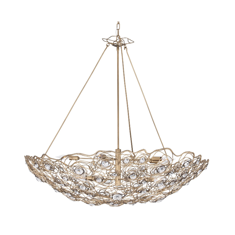A rose is a rose is a rose, until of course, it is reimagined by Varaluz. Inspired by a drawing that appeared in the Japanese design magazine, Shin-Bijutsukai (New Oceans of Art), Ethereal Rose marries swirling lines of varying thicknesses and irregular curves with a mid-century metal work technique. At the center of each rose is a multi-faceted round optic quality crystal element. The hanging stems and secondary canopy complete the wispy design motif.