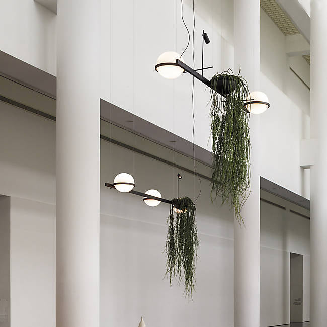 Nature takes control of the space. With the pendant lamps, the interior ambiance takes on a life of its own with the possibility of integrating plants with the lighting compositions.