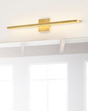 Designed with modern appeal, the Banda 36 Bath Bar by Sean Lavin for Tech Lighting provides a clean aesthetic with straight-lines and crisp edges enveloping integrated LEDs providing up and downlight.