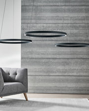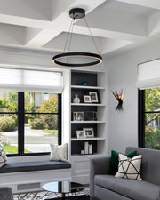The Fiama chandelier by Tech Lighting is a transitional style chandelier but with an entirely modern twist. At its most unadulterated form the Fiama is a slender metal ring that houses gently diffused upward and downward firing LEDs, providing functional light with an ultra-chic aesthetic.