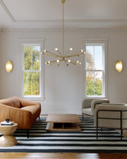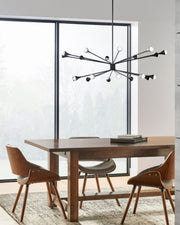 This Mid-Century Modern-inspired family, Lody by Sean Lavin for Tech Lighting, recreates a retro look with contemporary appeal. This Lody chandelier features 20 orbed diffusers mounted at the ends of flared arms to create two rings of up and down LED illumination.