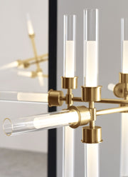 The Linger 18-Light Chandelier by Sean Lavin for Tech Lighting is designed with 18 LED lights shaped by glass and acrylic cylinders illuminating in multiple directions. Available in modern finishes. Linger 18 Chandelier creates a beautiful statement piece for your dining room, living room and foyer.