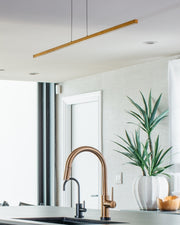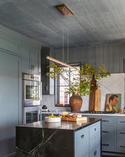 The ultimate in modern minimalism, the clean horizontal line of the Essence linear light chandelier by Tech Lighting will make a dramatic statement while not detracting from beautiful room surroundings.