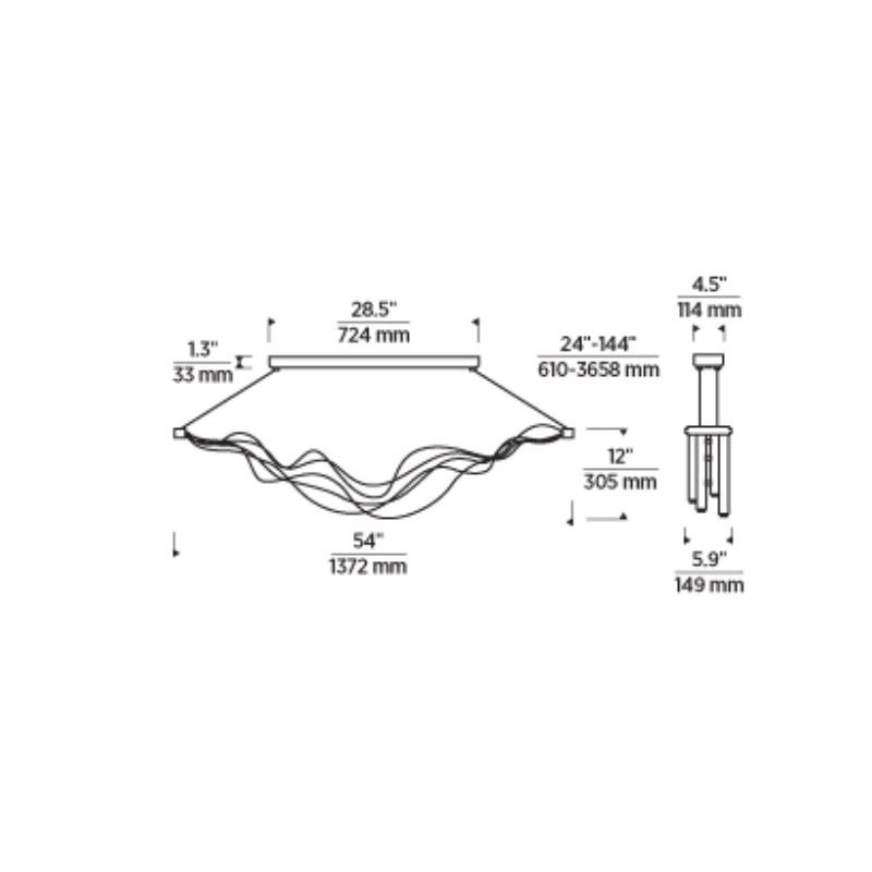 The Surge linear suspension by Tech Lighting appears to float effortlessly with its smooth wavy lines. The graceful force of ocean waves is captured when gently undulating bands of downward and upward firing LED strips join to form a striking fixture capable of creating layers of illumination.