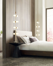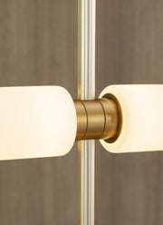 The Aged Brass ModernRail Pendant by Sean Lavin for Tech Lighting showcases the sophistication of ModernRail but with all of the simplicity of an elegant pendant. This Aged Brass ModernRail pendant features optional frosted opal glass globes or cylinders that gracefully wrap around the center rail allowing light to illuminate generously into surrounding spaces.