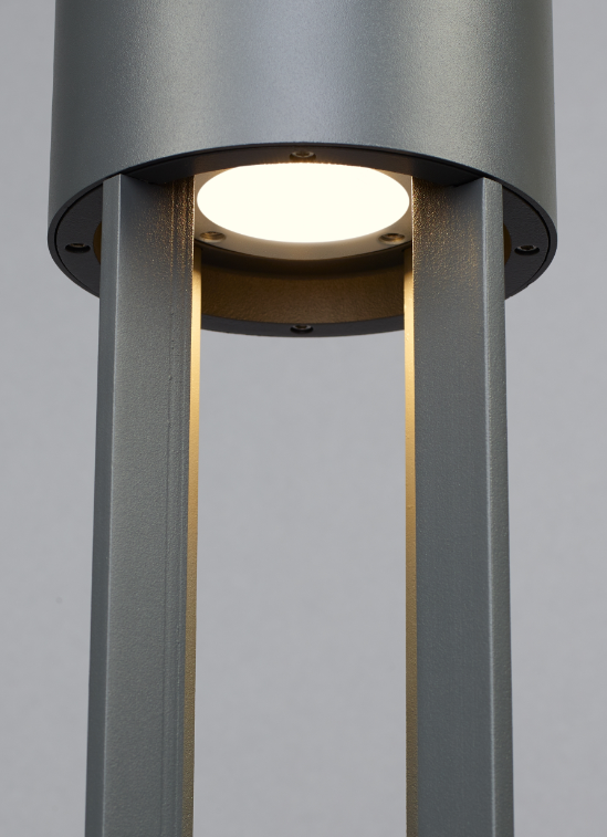 The distinctively contemporary modern Turbo outdoor lighting family by Sean Lavin for Tech Lighting includes a cylindrical light column, a powerful outdoor LED solution for general illumination and area lighting.