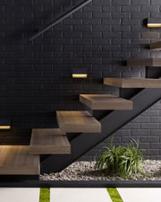 The modern design of the Krysen outdoor wall and step light by Sean Lavin aims light downward to illuminate stairs or graze walls with minimal glare. Ideal for wayfinding and added safety after dark.