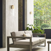 The Kulma Large Wall by Kelly Wearstler embodies the essence of the ubiquitous lantern through an evocative study rooted in the singular planar elements of glass and frame. A collection suited for both indoor or outdoor, minimal yet high-impact architectural design with warm LEDs transmitted through planes of clear glass and supplemented by burnished metal finishes.
