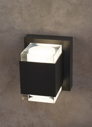 In dramatic contrast to the die-cast metal body, two symmetrical reveals cut from a solid piece of optically pure acrylic adorn the top and bottom of the Voto wall sconce. Beautiful LED light pours from the top and bottom of the thick-cut acrylic to provide ample illumination. Also available as a downlight to meet the varying needs of outdoor applications.