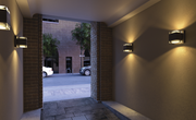 In dramatic contrast to the die-cast metal body, two symmetrical reveals cut from a solid piece of optically pure acrylic adorn the top and bottom of the Voto wall sconce. Beautiful LED light pours from the top and bottom of the thick-cut acrylic to provide ample illumination. Also available as a downlight to meet the varying needs of outdoor applications.