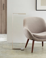 The Dessau 38 Floor Lamp by Sean Lavin was inspired by the architecture, function and beauty of the Bauhaus movement designed with a linear formation intersecting at a 90 degree angle. Emulating a modernized pharmacy lamp, the Dessau Floor Lamp design houses a slim recessed panel of integrated LED lights extended from a 38" high base.