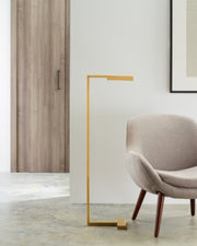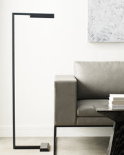 The Dessau 46 Floor Lamp by Sean Lavin was inspired by the architecture, function and beauty of the Bauhaus movement designed with a linear formation intersecting at a 90 degree angle. Emulating a modernized pharmacy lamp, the Dessau Floor Lamp design houses a slim recessed panel of integrated LED lights extended from a 46" high base.