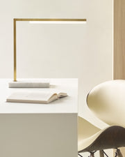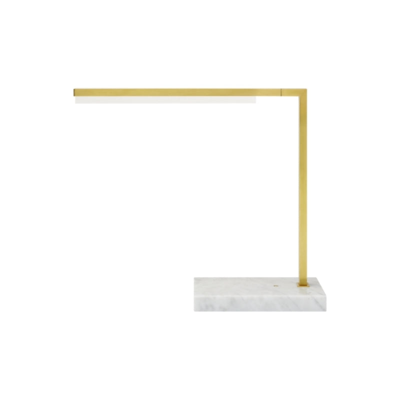 Klee 18 Table Lamp by Sean Lavin for Tech Lighting is inspired by the Bauhaus movement with minimalist straight lines and a thin LED light guide panel set on a beautiful White Marble base.
