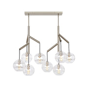 The Sedona Double chandelier from Tech Lighting perhaps is best described as a deconstructed modern chandelier, where four glass orbs are each suspended from the sleek branchlike central hub via contrasting textured cloth covered cords to make a distinctly alluring visual statement. While each transparent clear or transparent smoke glass orb is perfectly spherical and smooth on the exterior surface, the interior surface features gradually thickening bands of glass which are artfully crafted by talented artisans to add alluring visual interest and dimension to your space.