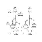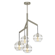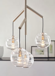 The Sedona Single chandelier from Tech Lighting perhaps is best described as a deconstructed modern chandelier, where four glass orbs are each suspended from the sleek branchlike central hub via contrasting textured cloth covered cords to make a distinctly alluring visual statement. While each transparent clear or transparent smoke glass orb is perfectly spherical and smooth on the exterior surface, the interior surface features gradually thickening bands of glass which are artfully crafted by talented artisans to add alluring visual interest and dimension to your space.