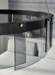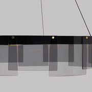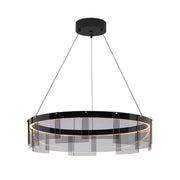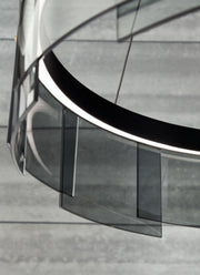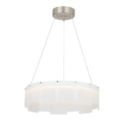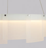 The overlapping panes of gently curved glass instantly define the Stratos LED chandelier from Tech Lighting. The collection of slumped transparent or frosted glass combine to create a shade which surrounds a smoothly diffused, fully dimmable LED source, all within an ultra-slim profile. This modern lighting collection can be scaled from residential dining room lighting, kitchen island lighting and media room lighting applications to commercial hospitality lighting and corporate lighting applications.