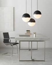 Transforming a sphere into mid-century art, the Akova Grande Pendant by Sean Lavin for Tech Lighting bands together contemporary finishes with a smooth acrylic diffuser to project a beautiful glow.