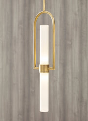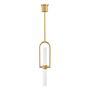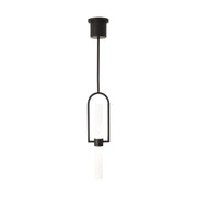 The Calumn Pendant by Sean Lavin for Tech Lighting features an elongated pendant framed by a metal arch suspended at the center of the shade for visual appeal.