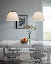 The Devin Pendant from Sean Lavin is an unexpected twist on the classic table lamp silhouette with its clean modern design style.