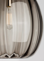 The Harper pendant by Tech Lighting draws the eye with its beautiful tear dropped ribbed organic texture. This large glass pendant is handcrafted by highly skilled Polish artisans. The artisans start by creating a classic bulb shape and then gently manipulate the glass into a perfectly ribbed texture.