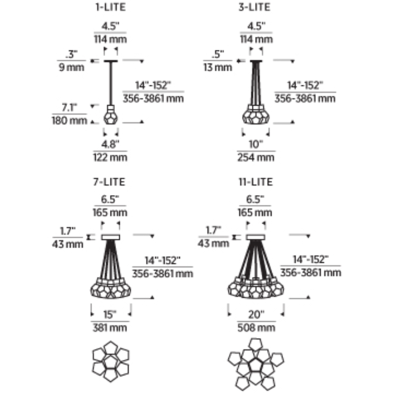 The Kira Pendant by Sean Lavin for Tech Lighting is striking in appearance. The facetted cut crystal illuminates beautifully by a downward-firing LED that is hidden within the minimalist hardware above. With a modest scale the Kira is ideal for kitchens, living spaces, bedroom lighting and commercial applications. Comes with an energy efficient integrated LED lamp, which is fully dimmable to create the desired ambiance in any space. Available in 1-lite, 3-lite, 7-lite and 11-lite options. Clustered in groups, the Kira immediately becomes a stunning statement.
