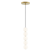 The Orbet 5-Light Line-Voltage Pendant by Sean Lavin for Tech Lighting is inspired by the classic pearl with perfectly stacked milk glass orbs. LED illumination through milk-glass provides a soft diffused aesthetic and each orb is accented by a thin contrasting metal band. This fixture is the perfect design for hanging individually or clustering in multiples for a dramatic effect.