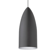 Inspired by vintage automobile styling of the 1940s, spun metal shades with rubberized paint create a flawlessly smooth look that also offers an unexpected metallic texture and color when viewed from below.