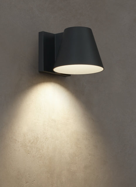 The classic and sleek silhouette of the Bowman LED outdoor wall sconce by Tech Lighting makes it suitable for both indoor and outdoor applications. Clean lines and mid-century modern design inspiration characterize the die-cast aluminum body which houses a powerful, long-lasting LED light source tightly controlled for down light only, yet supplying significant illumination for even the darkest nights.