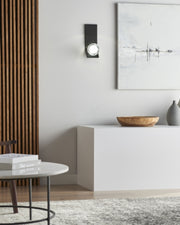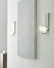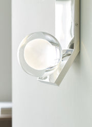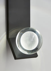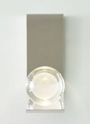 The Mina Wall Sconce by Sean Lavin for Tech Lighting features an elegant sphere of pure optic crystal. This beautiful resting orb is laser-etched and further illuminated by a powerful firing LED hidden within the socket. With an outward bending backplate to angle the illumination, the Mina Wall Sconce provides general illumination in the surrounding space.