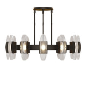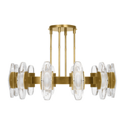 The Wythe X-Large Chandelier by AvroKO for Tech Lighting presents a strong impression with smooth diffusing light in its most honest and simplest form. It is created from the marriage of industrial elements and the raw natural expression of glass. The cylindrical brass structure holds cast glass that is lit to highlight the natural fissures and imperfections from the casting process. This fixture proves its distinction over time, aging with elegance and becoming unified with the place it intends to call home.