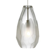 Transparent glass is formed into a classic teardrop shape, then manipulated by hand to create unique semi-opaque facets.